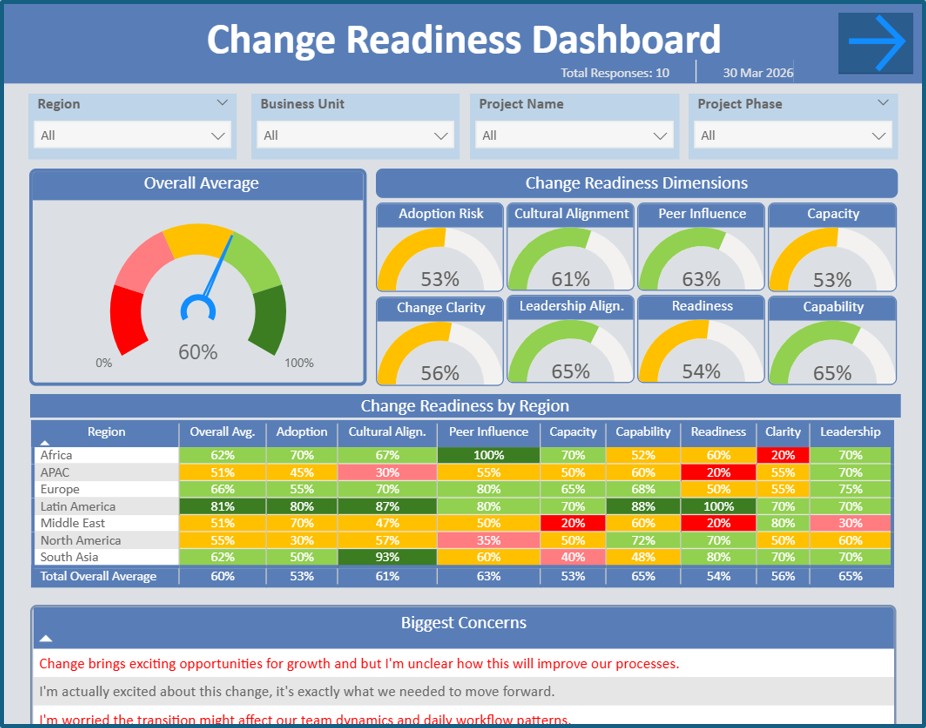 Example of Change Readiness Dashboard